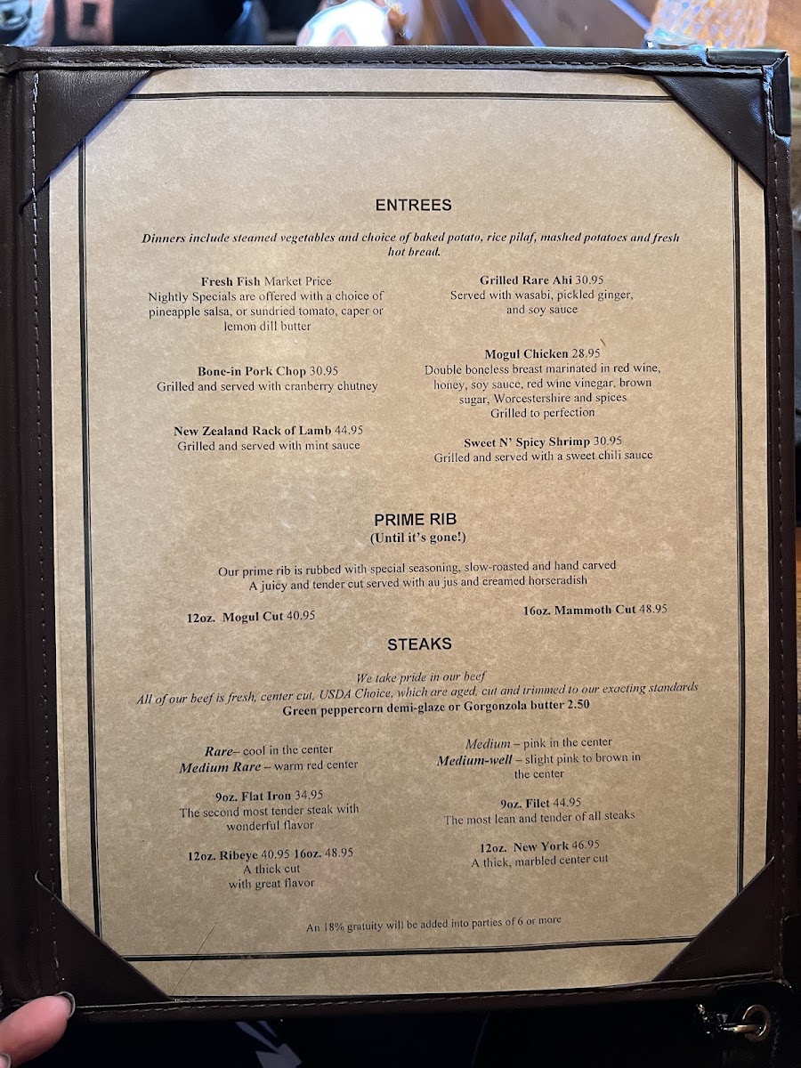 In conclusion, whether you're a local or just passing through Mammoth Lakes, Mogul Restaurant is a must-visit destination for anyone craving delicious food and warm hospitality. With its succulent steaks, attentive service, and homey atmosphere, it's a place where memories are made and dining becomes a cherished experience. Make a reservation at +1 760-934-3039 and treat yourself to an evening you won’t soon forget!